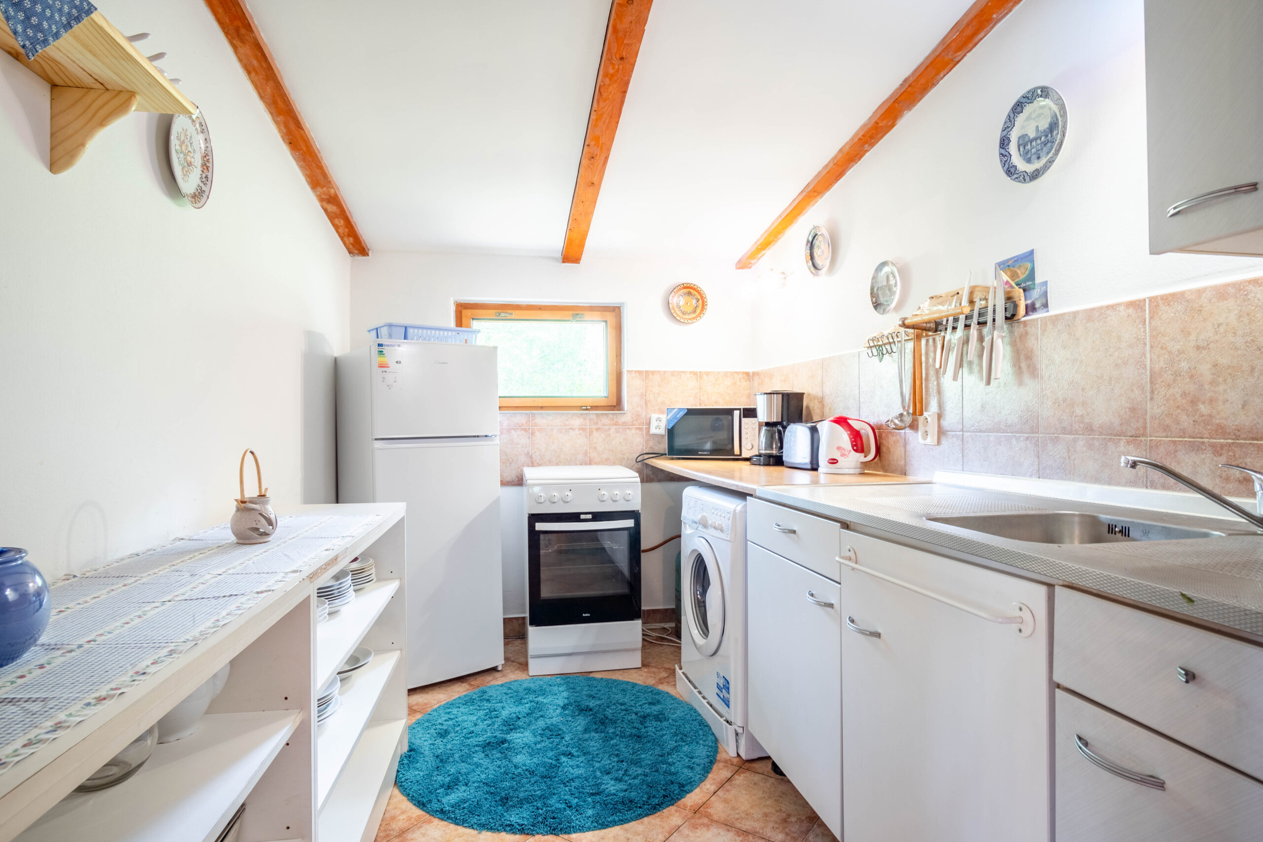 • Plně vybavená kuchyň – trouba, lednice, mikrovlnka, kávovar, rychlovarná konvice i veškeré nádobí.