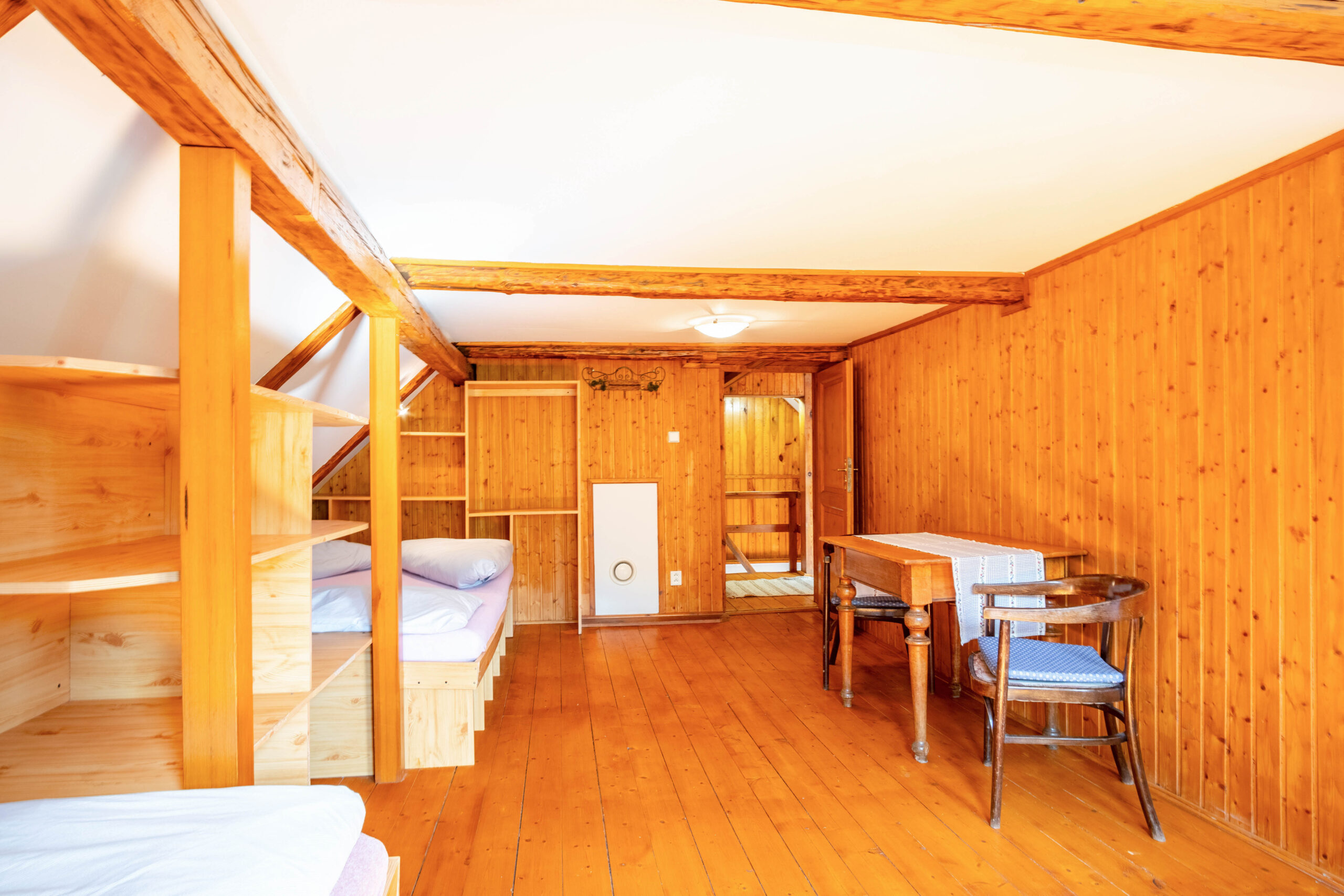 Roubenka pojme až 10 osob a nabízí dostatek prostoru pro pohodové chvíle s rodinou nebo přáteli. V útulné světnici s kamny se budete cítit jako doma – ať už si dáte snídani, zahrajete deskovky nebo si večer otevřete láhev vína.